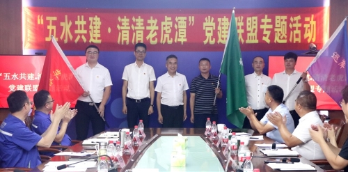 6月29日,中环水务党委下属湖州中环党总支和湖州市水利局直属机关党委、吴兴区埭溪镇党委、德清县莫干山镇党委正式签约共建湖州市首个护水党建联盟——“五水共建·清清老虎潭”党建联盟。