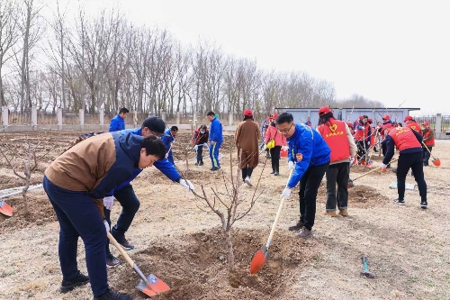 到达植树现场后,全体志愿者三五人一组,以饱满的热情迅速投入到绿化劳动之中,大家或扶正树苗、或挥锹培土、或踩实新土、或提桶浇苗……,各环节衔接有序、配合默契,现场一派热火朝天的繁忙景象。志愿者们先后在通州西集潞城、台湖、宋庄等水厂种植樱桃树24颗、黄桃树16颗、银杏树30颗、葡萄89株、黄杨50平米、石榴树30颗以及四季花籽46斤。“种下一片树林,美化一方热土。”参加活动的志愿者表示,此次植树活动增强了大家的生态环保意识,同时也让绿色发展的理念更加深入人心,大家共同种下一片绿色,也为首都北京的春天播下了新的希望。