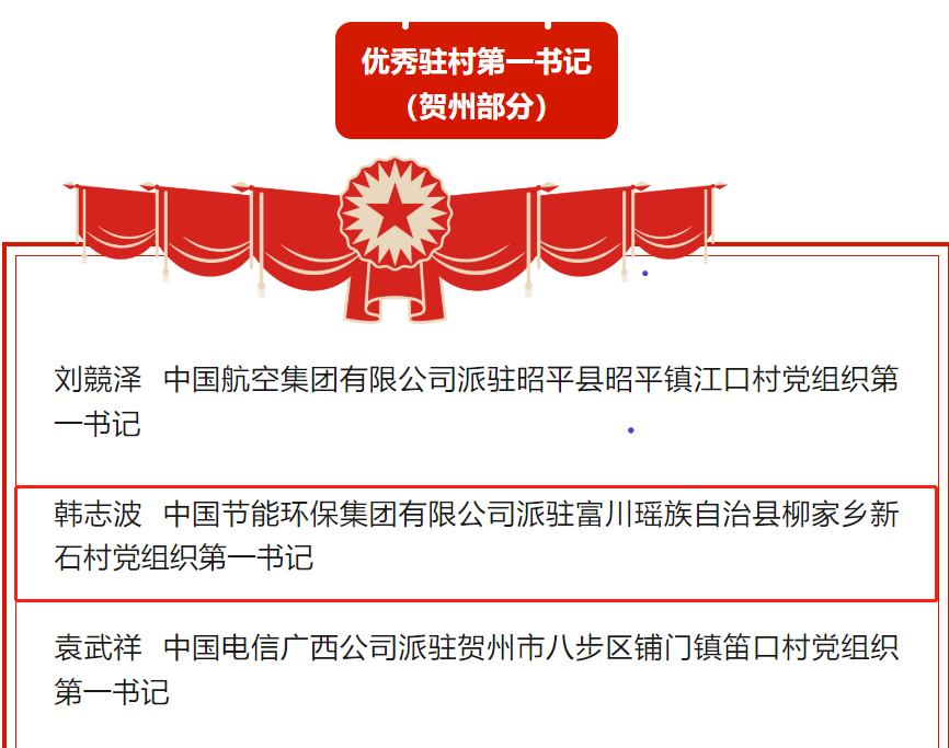 近日,广西自治区抓党建促乡村振兴工作暨2021—2022年度驻村工作队先进集体和优秀个人总结表彰电视电话会议在南宁召开。集团公司定点帮扶驻村干部韩志波同志获得“优秀驻村书记”荣誉称号,为集团公司和新时代集团争得了荣誉。