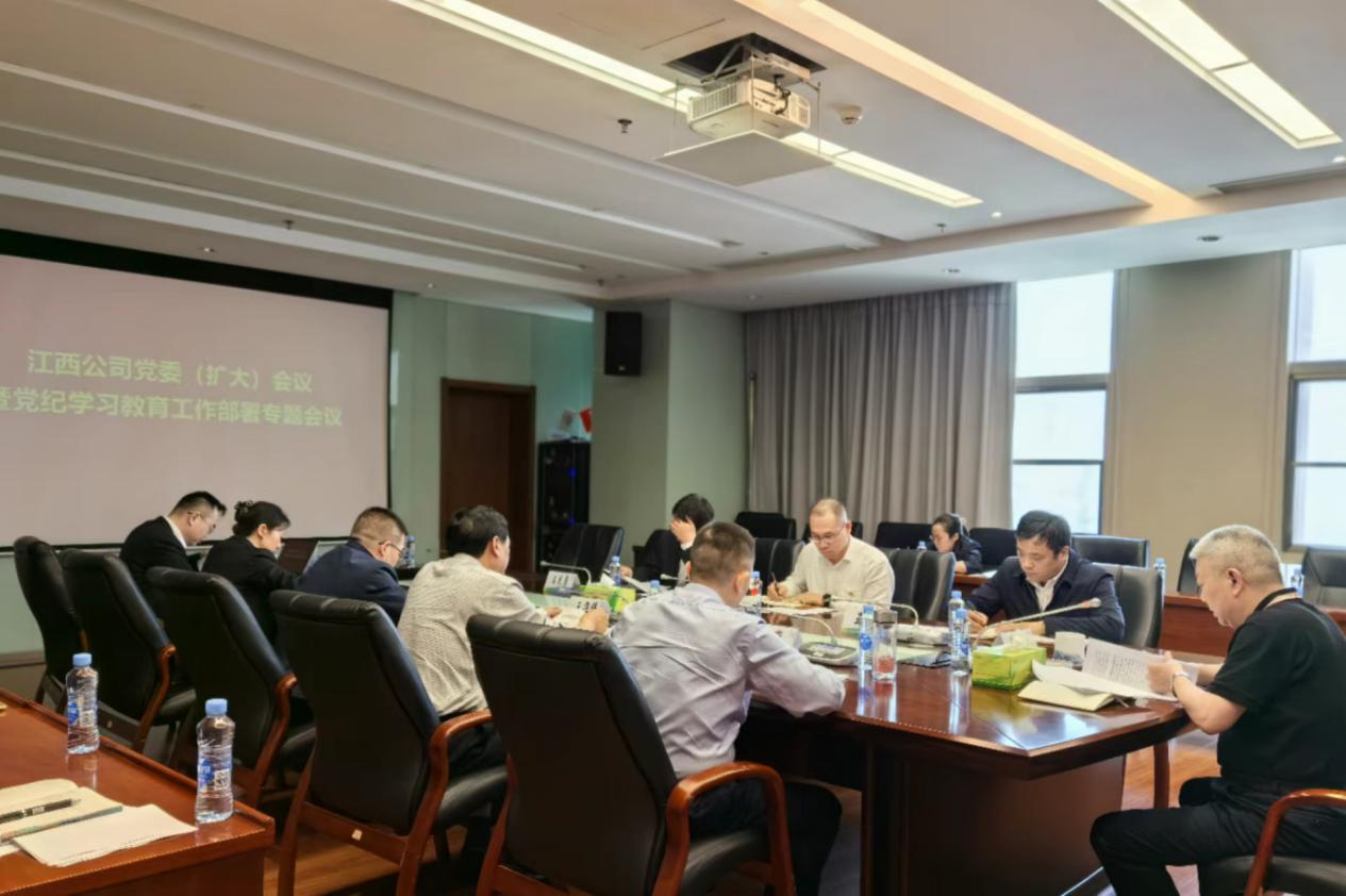 会议传达学习了习近平总书记关于党纪学习教育重要讲话和重要指示精神、中央党的建设工作领导小组会议精神、中共中央办公厅《关于在全党开展党纪学习教育的通知》、国务院国资委党委关于党纪学习教育专题会议精神、国务院国资委党委《关于开展党纪学习教育的通知》精神和《集团公司党委关于开展党纪学习教育的工作方案》,研究审议《江西公司党委关于开展党纪学习教育的工作方案》,并对江西公司开展党纪学习教育工作进行动员部署。