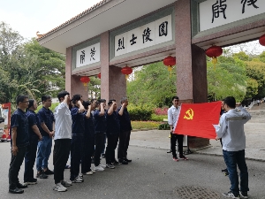 烈士纪念碑前,全体党员及入党积极分子庄严列队,肃立缅怀先烈,向为祖国和人民英勇献身的烈士默哀,行鞠躬礼,敬献花束,并环绕纪念碑一周,对革命先烈为坚守革命理想,为捍卫人类和平事业,为新中国的诞生而做出的伟大牺牲和无私奉献精神表达了崇高的敬意。在庄严肃穆的氛围中,全体党员重温入党誓词。