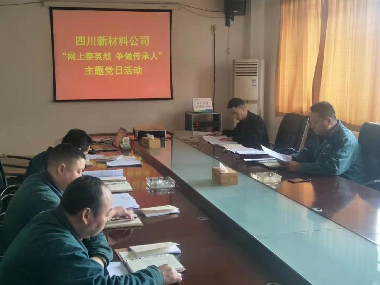 为进一步深化爱国主义教育、革命传统教育,贯彻落实资产公司“传承红色基因 牢记初心使命 守望国资安全”党史学习教育,四川新材料公司党支部组织党员和积极分子开展了“网上祭英烈 争做传承人”主题党日活动。
