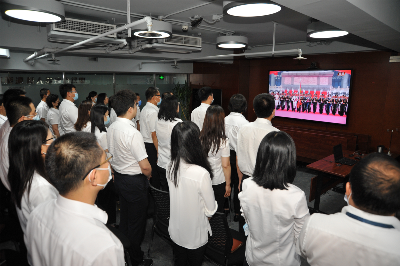 中共中央于7月1日上午在北京天安门地区隆重举行庆祝中国共产党成立100周年大会,根据国资委党委、集团公司党委部署安排,风电公司组织全系统采取集中收看和分散收看等形式,设置36个分会场,共计260余人收看了庆祝中国共产党成立100周年大会直播。