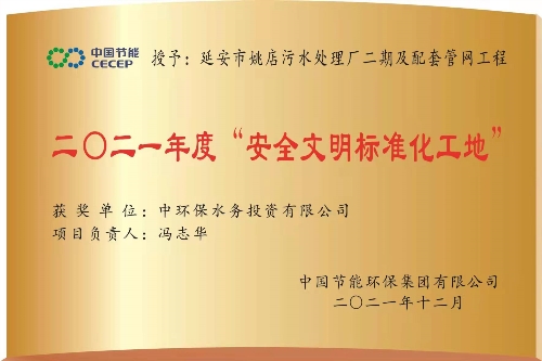 2021年12月,中环水务下属延安姚店污水处理厂二期及配套管网工程(以下简称姚店项目)获评集团公司“安全文明标准化工地”。这是姚店项目一年之内第三次获评“安全文明标准化工地”,标志着该项目的安全生产、文明施工、绿色施工以及安全生产标准化工作受到集团公司以及省市主管部门的高度认可。