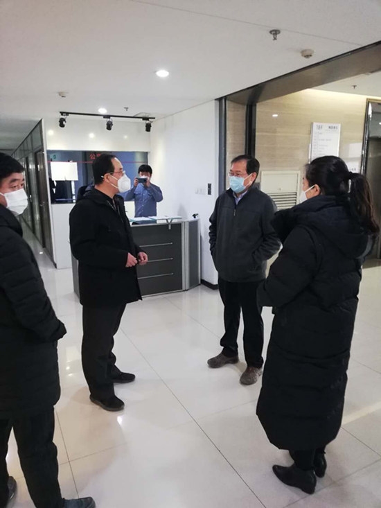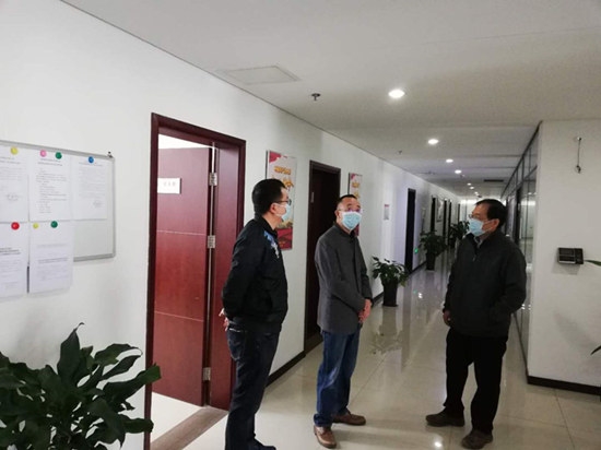 2月25日,中国启源党委书记、总经理、疫情防控工作领导小组组长郝小更带队检查疫情防控和复工复产情况。