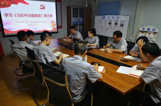中国环保党委迅速召开党委会,第一时间对全系统各级党组织学习《习近平谈治国理政》第三卷作出部署;专门发出通知,将集团公司有关开展学习的要求传达到每个党组织和每名党员。为保障各级党组织全面开展学习活动,公司党委为每名党员购买发放了《习近平谈治国理政》第三卷。7月27日,中国环保党委理论学习中心组以“学习贯彻习近平生态文明思想,积极参与长江污染治理”为主题,召开第七次学习研讨会,周康书记领学了最新出版的《习近平谈治国理政》第三卷第十三讲“促进人与自然和谐共生”专题,中心组成员围绕主题作了深入交流发言,第一时间贯彻落实集团公司党委有关开展学习《习近平谈治国理政》第三卷通知要求,同时邀请部分子公司党组织班子成员一并在线学习研讨,充分发挥了党委示范引领作用。