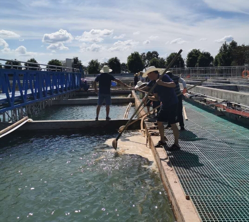 除此之外,三水厂全体职工24小时不间断人工打捞反应池、平流池内已致死的藻类漂浮物,全力保障河东地区用户的用水质量。