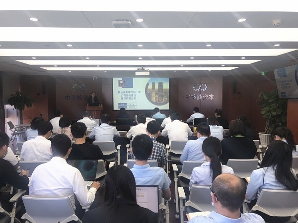 2020年9月18日下午,中节能资本控股有限公司开展了第七期“学理论·精业务”系列培训,邀请公司常年法律顾问赵颖律师作“民法典影响下的上市公司并购重组重点问题分析”培训。中节能资本公司领导、本部及各子公司员工共计45人参加了培训。