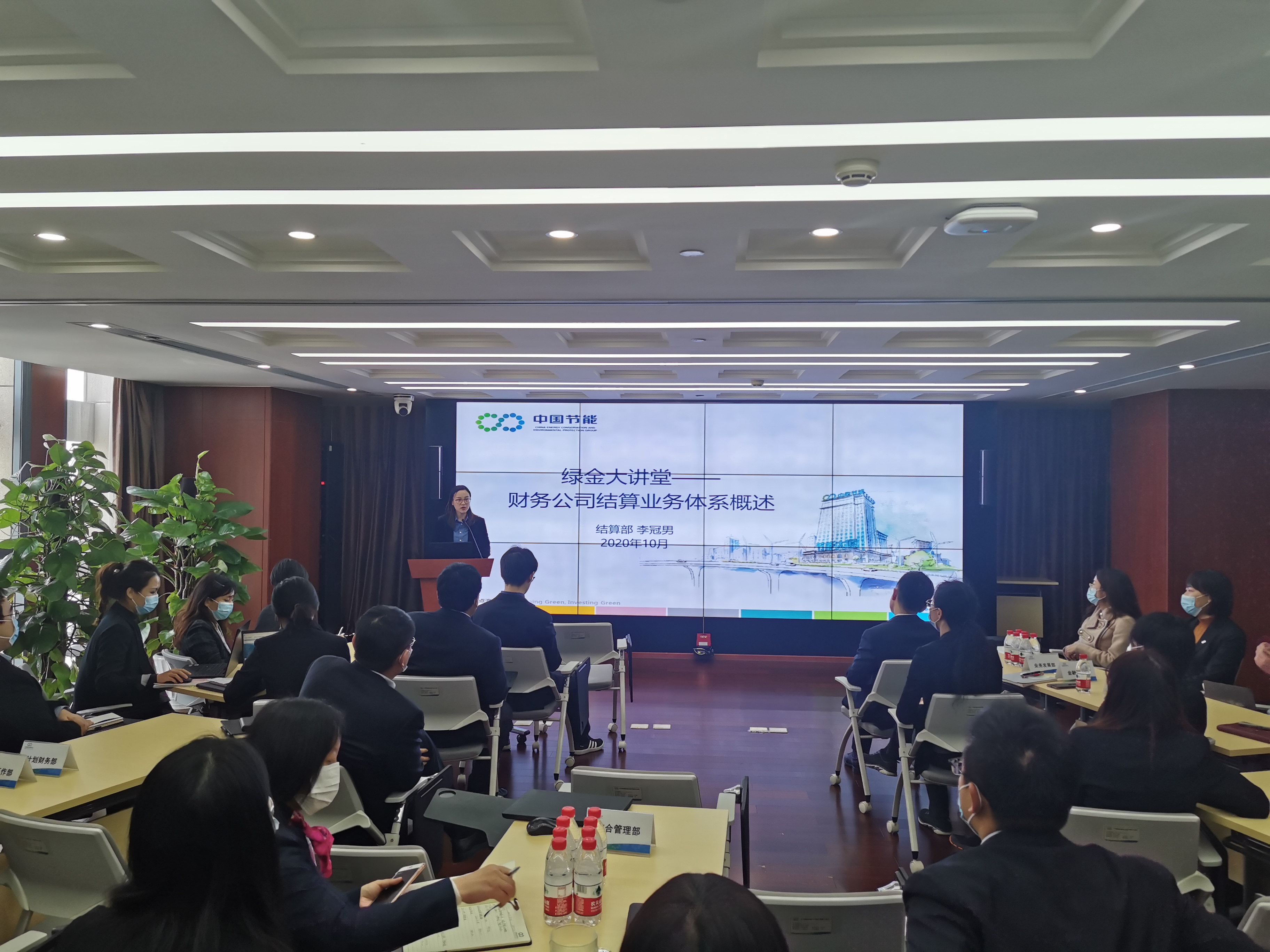 2020年10月30日,中节能财务公司举办第三期“绿金大讲堂”讲座,讲座主题为“财务公司结算业务体系概述”,公司领导班子及全体员工参加本次讲座。