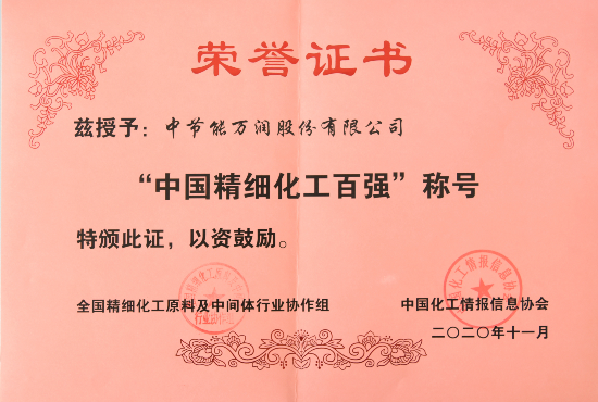 11月25日,“第二十届国际精细化工原料及中间体峰会暨2020中国精细化工百强发布会”在山东寿光举办,大会公布了“2020中国精细化工百强”榜单,中节能万润股份有限公司位列第八。该榜单根据入围的百强企业2019年主营业务收入、利润率、国际经营、管理体系、研发投入、知识产权、社会责任、信用情况、品牌能力,社会兼职等几方面评选而出。
