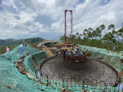 面对“当年开工、当年竣工”任务目标、防雷防汛和疫情防控等多重考验,为实现首台浇筑开门红,风电广西公司以“打造一流工程”的目标,组织全方位力量,多作业面同步推进,全面强化节点把控和过程把控,争分夺秒推进工程进度。忻城宿邓项目首台风机基础浇筑的顺利完成,标志着项目主体工程正式进入实质性施工阶段。