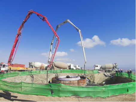 8月27日,风电甘肃公司靖远靖安5万千瓦风电场项目首台风机基础混凝土浇筑顺利完成。