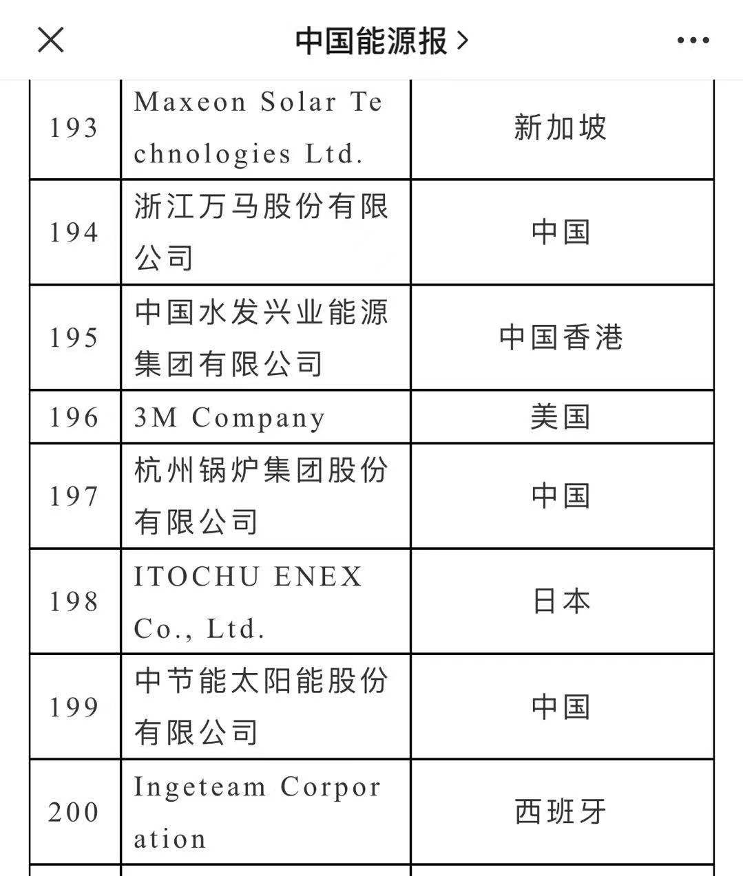 近日,氢能产业发展论坛暨第十一届全球新能源企业500强峰会在山西太原隆重举行,太阳能公司公司入围全球新能源企业500强,位列第199名。