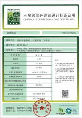 中节能·太湖首座(智能科学中心项目)日前顺利获得三星级绿色建筑设计标识证书。