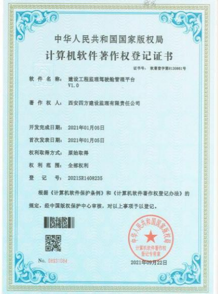 近日,经国家版权保护中心审核考证,中国启源下属四方监理被认定为“建设工程监理驾驶舱管理平台V1.0”等三项软件著作权持有人,并授予《中华人民共和国国家版权局计算机软件著作权登记证书》。