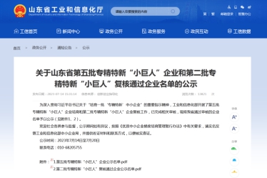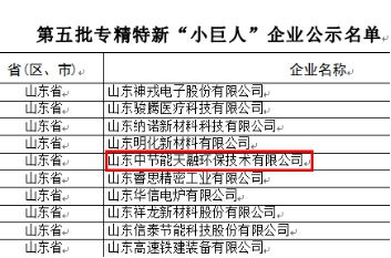 根据山东省工业和信息化厅2023年7月14日公布的《关于山东省第五批专精特新“小巨人”企业和第二批专精特新“小巨人”复核通过企业名单的公示》,中节能大数据有限公司下属山东中节能天融环保技术有限公司成功入选第五批国家级专精特新“小巨人”企业。