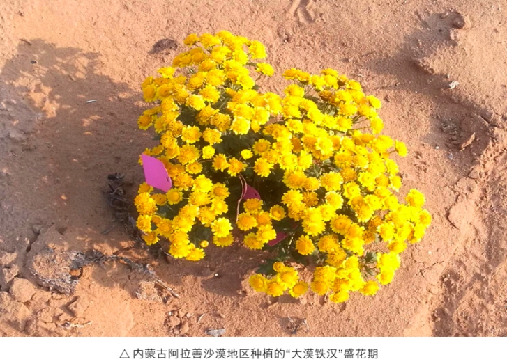 “大漠铁汉”是公司近年来在抗逆植物培育技术体系领域取得的又一重大进步,将进一步增强公司在荒漠化治理领域实力,积极拓展公司综合解决方案适用范围。如,未来可在阿拉善地区及其他荒漠地区进行推广应用,促进荒漠地区生态恢复,助力巩固和发展“绿进沙退”的良好势头。此外,“大漠铁汉”花色金黄,可作茶用及药用且具备较强观赏性,如在沙漠地区进行产业化栽培应用,发展配套工艺进行采摘并生产相关产品或开发精品盆栽进行销售,可提高当地治沙综合效益,进一步促进区域经济社会高质量发展。