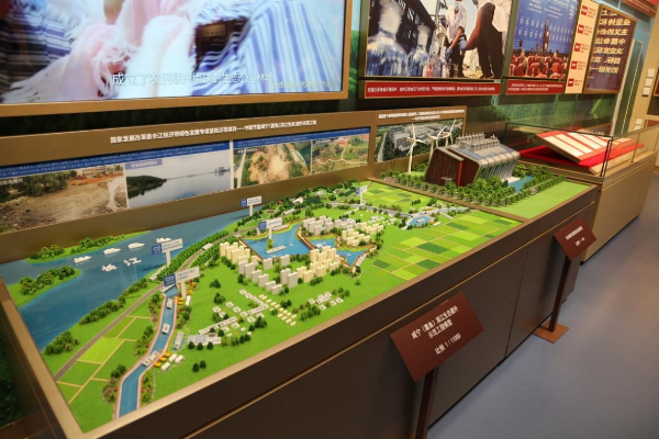在三层展厅,中国节能生态嘉鱼滨江生态提升示范工程和中国节能中节能实业杭州绿色建筑馆的沙盘模型作为史料展出。大家驻足观看,仔细聆听讲解,纷纷合影留念,为集团公司在长江大保护、建设美丽中国中取得的成就深感自豪,进一步增强了做好生态文明建设、如期实现双碳目标的信心和力量。