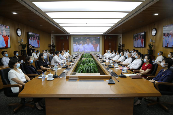 集团公司党委把集中收听收看庆祝中国共产党成立100周年大会和深入学习宣传贯彻习近平总书记的重要讲话作为重大政治任务,提前部署、周密安排、抓紧抓实。集团公司党委书记、董事长宋鑫应邀到现场出席大会。集团公司党委副书记、总经理余红辉带领总部党员干部在节能大厦集中收看。集团系统广大党员干部职工通过电视、网络等形式收听收看大会盛况。
