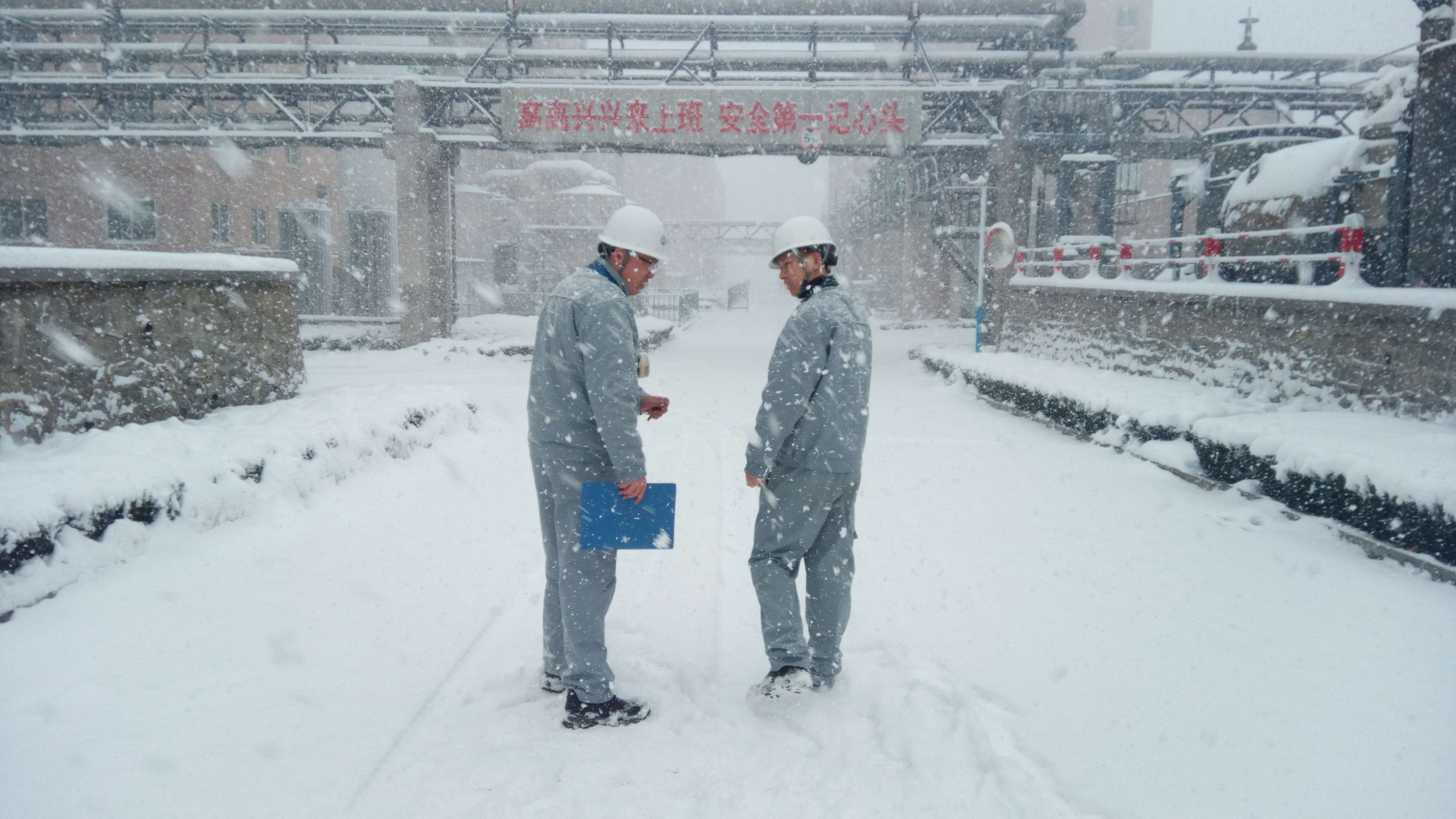 推进办风雪中巡检之路