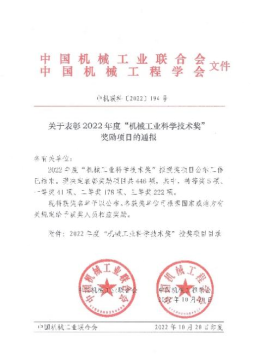 近日,风电公司参与的“复杂工况条件下风电齿轮传动系统故障诊断技术及应用”项目获得2022年度“机械工业科学技术奖”技术发明二等奖。