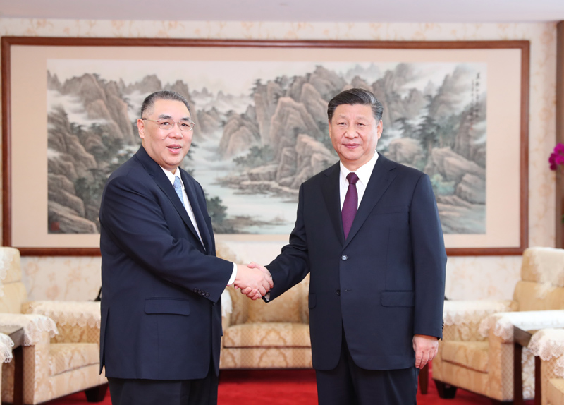 12月18日,国家主席习近平在澳门会见澳门特别行政区行政长官崔世安。新华社记者 李涛 摄