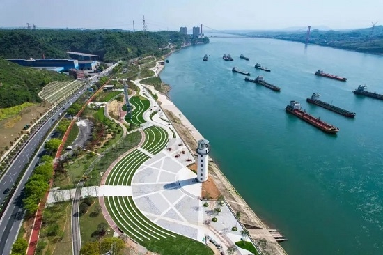 在湖北宜昌,中国节能以长江岸线整治和生态修复为核心,按照“拆违退绿见山水,梳林借景听碧涛,一带三脉十节点”的整体设计方案,实施9千米长江岸线生态修复工程,通过开展排污口整治、码头环境治理、河道岸坡复绿、岸线生态修复、河道综合整治、水质提升等综合治理项目,打造了“山水长歌、江语翠滩”的长江岸线修复示范地。