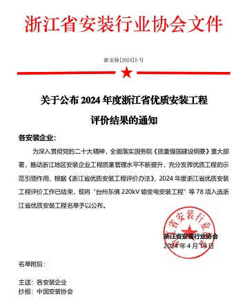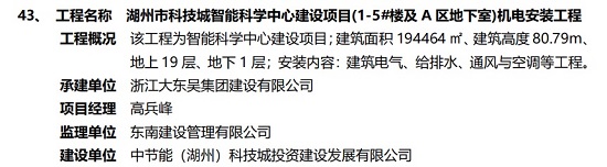 日前,浙江省安装行业协会发布《关于公布2024年度浙江省优质安装工程评价结果的通知》,位于湖州南太湖新区西风漾单元XSS-03-02-04C号地块、西风漾单XSS-03-02-04C-1号地块的由中节能实业公司建设的湖州市科技城智能科学中心项目(中国节能·太湖首座)获2024年度浙江省建优质安装工程,这一荣誉是对项目安装质量水平的高度认可。