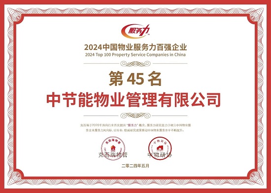 会上,中节能实业公司下属物业公司服务力名次再度攀升,荣获“2024中国物业服务力百强企业第45名”“2024中国办公物业服务力TOP20企业”“2024中国公建物业服务力TOP20企业”“2024中国工业物业服务力TOP10企业”“2024中国红色物业服务领先企业”“2024中国物业低碳运营领先企业”“2024中国物业服务企业品牌价值100强”和“2024中国物业服务华东品牌企业30强”奖项。