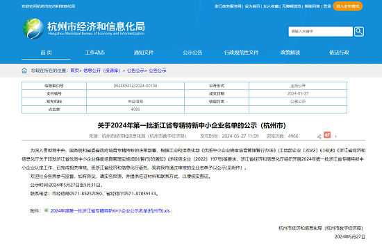 近日,杭州市经济和信息化局(杭州市数字经济局)发布《关于2024年第一批浙江省专精特新中小企业名单的公示(杭州市)》,中节能实业下属绿建科技公司光荣上榜,成功获评“2024年度浙江省专精特新中小企业”。这是继2023年绿建科技公司通过全国科技型中小企业、杭州市创新型中小企业、杭州市企业高新技术研究开发中心认定后的又一重大突破。
