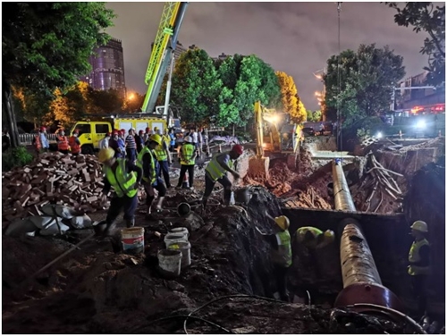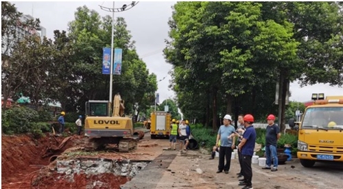 7月18日当晚11时,塌陷区域清理工作基本完成后,公司组织的抢修人员马上投入施工抢修。在实施过程中,公司领导、市住建局及水电气等权属单位的领导24小时专人值守现场,保证整个施工严格按照安全生产规程进行。