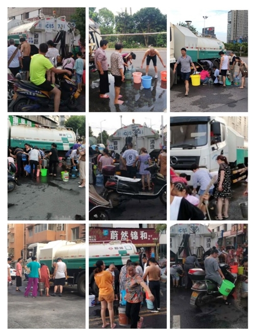 与此同时,公司闸门班将沿线主控阀门关闭后,公司立即收集沿线用户信息并联系送水车。当天18:00送水车已陆续为沿线12个区域小区停水用户送水,次日送水点增加至15个区域。当晚21:00抢修大队从九华钢管厂紧急调运来了2根12米长的钢管,按照市住建局制定的抢修抢险方案准备抢修。
