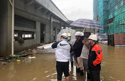 7月18日早上,公司防汛救灾领导小组人员相继奔赴肥西项目,领导班子成员靠前指挥抢险,涉水巡查了公司各值守区域,对重点关注区域设备安全提出了要求。一方面疏通临时排水沟渠,加固防水围堰;另一面组织运行检修人员排查设备运行情况,防止设备在大雨期间误跳闸,影响机组安全运行。