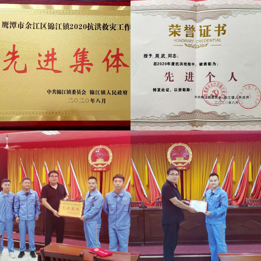 为此,鹰潭市余江区锦江镇镇政府近日隆重举行2020抗洪救灾工作表彰大会。会上授予我司锦江污水处理厂“先进集体”荣誉称号,并为厂负责人周武同志颁发“先进个人”荣誉证书,以表彰今年7月我司锦江污水处理厂集体在抗洪抢险救灾中不畏艰难、冲锋在前、齐心协力、全力抗洪抢险救灾的突出表现。