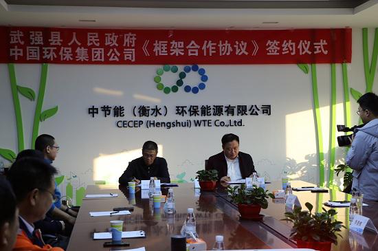 会上,吕刚首先介绍了节能集团公司各业务板块,以及中国环保在国内外城乡固废综合治理的发展情况,听取了武强县基本情况、旅游文化产业、种植养殖业、工业经济等情况介绍,并观看了中国环保及武强县宣传纪录片。共同探讨了今后合作发展的方向,随后双方代表签订了《框架合作协议》。