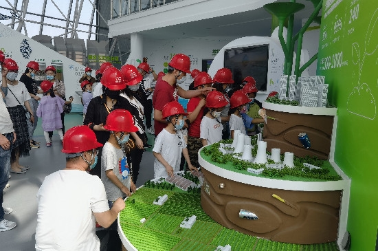 色彩明亮、充满设计感的厂区,从一开始就颠覆了小朋友和家长们对于垃圾处理厂的传统认知。在工作人员及讲解员的陪同下,首先来到了环保科普馆依次参观了“人与自然区”、“大气污染区”、“危机走廊”、“太阳能发电小屋”、“新能源区”、“能源未来沙盘”等板块。给小朋友和家长们带来震撼的地方是垃圾仓和拥有吨级承重的垃圾吊车。隔着厚厚的玻璃可以看到数万吨的垃圾像是一座山一样“躺”在大家脚下。在讲解员的讲解下,小朋友们不但学的津津有味,还积极举手发言,向讲解员提出自己的看法。