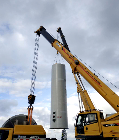 8月16日,风电五峰公司南岭100MW项目T04建设工地现场,大型起吊机轰鸣着将T04风机位的塔筒缓缓拉起,在指挥人员与塔吊操作人员密切配合下,一次性竖立对接成功,圆满完成南岭项目首段塔筒吊装任务。