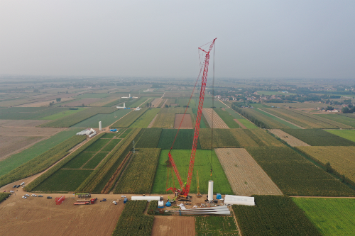 9月28日下午16:23,风电河南公司温县100MW风电场项目12#首台风机吊装成功,印有“中国节能”标志的125米风机高耸屹立于“怀庆”大地之上,标志着项目主体工程建设迈入了新阶段。