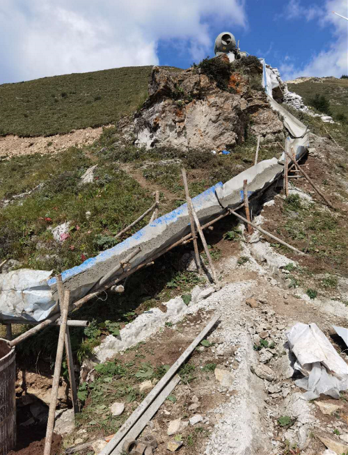 项目建设之路,棘地荆天困难重重。原平长梁沟项目是西中区域公司继四川云顶山项目后单体容量最大的建设项目,对西中区域公司发展具有重要意义。一直以来,为确保项目有序推进,区域公司克服“新冠”肺炎疫情、风电“抢装潮”影响,始终按着“快进键”。按照“全局一盘棋”推进思路,超前领先一公里与地方政府沟通,于3月正式复工,是当地第一家复工的新能源建设单位,但是项目工程建设之路却是困难重重。尤其是220kV送出工程,全线路塔基处于山脊,沿线地段多为山区,沟谷纵横,地形起伏落差大,不具备任何交通机械运输条件,全线93%塔机基础作业均为深基坑掏挖作业。为提高工作效率,减短施工周期,区域公司多次组织设计、监理、施工单位人员优化设计施工图纸,编制塔基专项方案。对40基架设货运索道进行物料运输,在索道架设时因地形和线路走向采用了单跨单索循环式索道和多跨单索循环式索道。由于送出工程整条线路走向都是沿着山脊,山坡铁塔采用高低腿塔型,基础采用全方位高低基础。在施工中上山坡两腿开挖时为了安全,下山坡两腿只能停止开挖作业,从而每基基础开挖成型需15天左右。整个送车工程有64基人工挖孔桩基础,桩基深度基本在8-13m之间,由于深基坑作业在每开挖一米需做有筋护壁进行安全措施。在施工中大部分塔基的基坑都是整石、青石、坚硬花岗岩对开挖施工难度加大,每日只能开挖40-1250px左右,为了加快施工进度,采取空压机打眼、民用爆破进行破碎;为了对基础开挖壁的完整性也采取了水磨钻钻孔作业,降低了塔基开挖难度,努力推进项目施工进度。