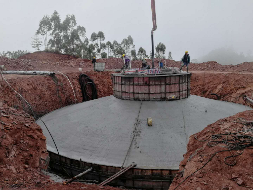 钦南项目于7月12日开始首台风机基础浇筑,严格按照对项目的进度、质量、安全及环水保进行全方位管控,制定了合理的施工计划,积极协调现场作业,落实施工方案,强化安全巡检和文明施工等各项管理工作,克服了疫情、天气、山地运输等诸多不利因素,按计划完成了风机基础混凝土的浇筑任务,为下一阶段工作争取了时间。