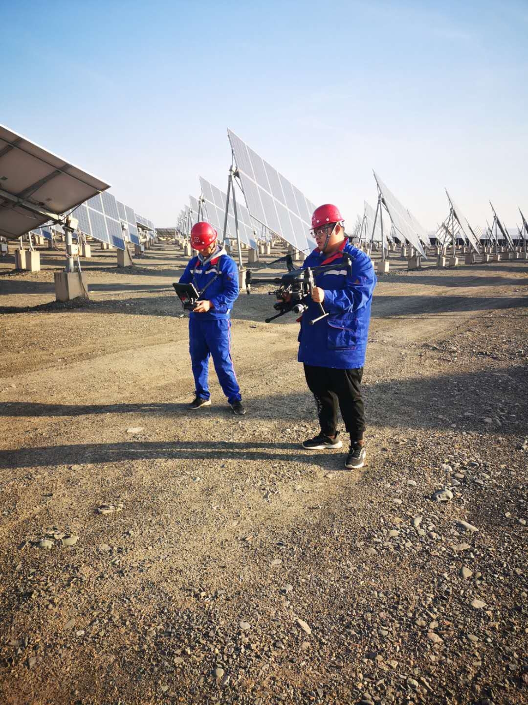长期以来,光伏电站的组件巡检都要靠一线运维员工携带测量工具,或开车,或步行前往厂区进行逐一检测,少则几万块、多则十几万块组件的检测量,对基层运维员工来说是巨大的压力和挑战。近年来,巡检无人机的出现给提高电站巡检效率、质量带来了希望。在新疆区党总支的支持下,新疆区率先购买了一架巡检无人机,用于全区范围内各电站的重点区域及设备巡检。此次,无人机巡检鄯善电站厂区,是该无人机首次正式应用于电站组件故障巡检工作。
