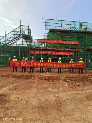 中节能忻城宿邓低风速试验风电场建设项目是广西壮族自治区2021年第二批统筹推进的重大项目,也是自治区、市、县三级的重点能源建设项目。自开工以来,广西公司克服工期紧张、钢材价格大幅上涨以及高温、雨季等各种恶劣天气影响等不利因素,提前谋划、适时调整施工计划,与各参建方积极沟通协商,针对不同情况合理规划人、材、物、机等。在与参建各方的共同努力下,开关站综合楼顺利封顶。