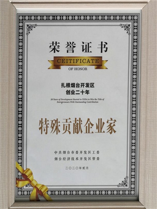 2020年3月19日,烟台经济开发区“竞速自贸新时代、打造开放新高地”攻坚动员大会在开发区城市展示中心召开。会议对在促进经济发展和履行社会责任等方面做出突出贡献的先进企业、集体及个人进行了表彰,烟台新时代健康产业有限公司荣获“扎根烟台开发区创业二十年优秀企业”、“2019年度全区履行社会责任优秀企业一等奖”称号,烟台新时代健康产业有限公司总经理刘胜荣获“扎根烟台开发区创业二十年特殊贡献企业家”、“2019年度全区功勋人物”称号。