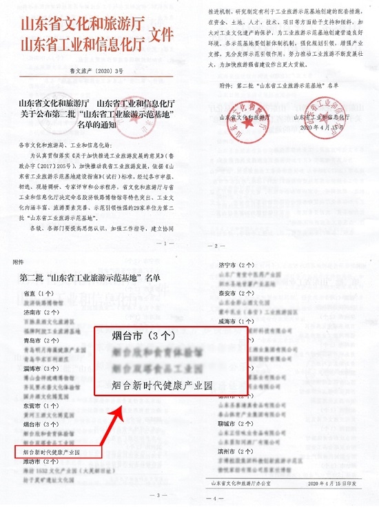 为加快推动山东省工业旅游发展,依据《山东省工业旅游示范基地建设指南》(试行)标准,经过各市申报、初选、现场调研、专家评审和公示程序,山东省文化和旅游厅与山东省工业和信息化厅于4月15日联合发布第二批“山东省工业旅游示范基地”名单,上榜企业在工业旅游建设工作中特色突出、工业文化内涵丰富、旅游要素完善、示范引领性强,新时代健康产业公司烟台健康产业园名列其中。