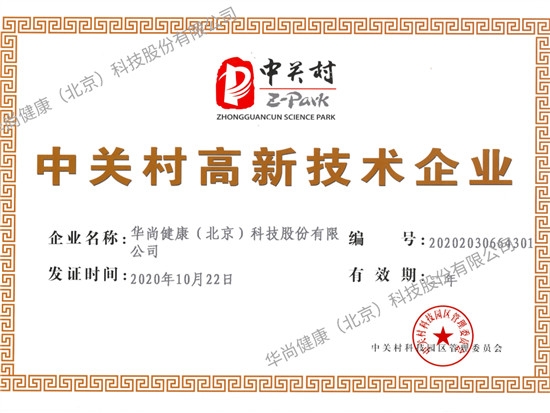 近日,华尚健康(北京)科技股份有限公司(下称华尚健康公司)成功通过中关村科技园区管理委员会审核,获得中关村高新技术企业认证,由此正式迈入高新技术企业行列。