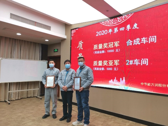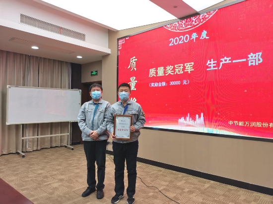 在品质会议上,对2020年质量奖考核数据及各车间存在的问题进行了介绍,对获奖车间及部门进行了质量奖颁奖。