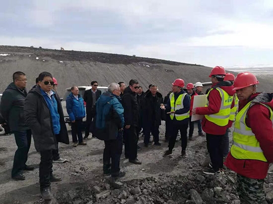 2021年4月18日上午,青海省常务副省长李杰翔一行对中国地质承建的木里矿区生态整治项目(标段三)渣山一体化治理项目施工现场进行视察。
