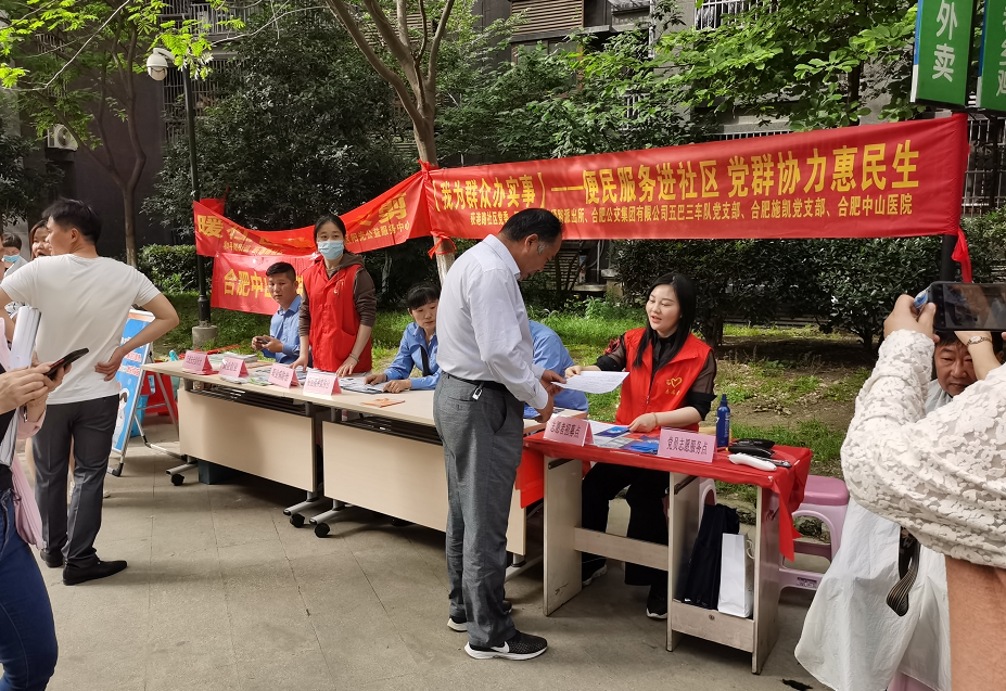 党史学习教育开展以来,重庆公司各级党组织坚持学党史,见行动,办实事,持续开展为民便民服务实践活动。2021年5月7日,重庆公司所属合肥施凯党支部与荻港路社区、大通路派出所、合肥中山医院党建携手开展“便民服务进社区党群协力惠民生 我为群众办实事”活动。