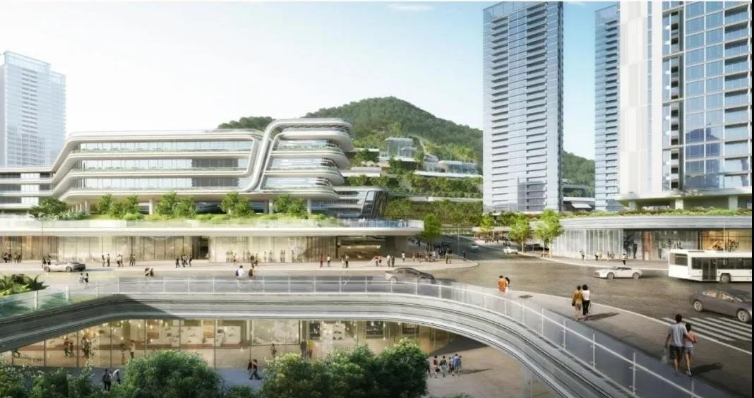 TOD项目是以公共交通为导向的开发项目,其特点是在规划一个居民区或者商业区时,使公共交通的使用最大化的一种非汽车化的规划设计方式。赤湾项目为典型的TOD项目,总建筑面积约63万㎡,配套建有住宅、商业、九年制学校、幼儿园、文体中心及地铁停车场综合配套用房等。设计团队在尊重周边规划条件、考虑场地限制的前提下,对自然、文脉与城市之间的关系进行了重新梳理,利用山体修复及公园设计,将绿意无限延伸,使景观融入社区和都市,蕴造生态、活力之城,同时将自然光、风以及修复山体后带来的优质景观等舒适元素带入项目内部公共空间,以左炮台站及相邻公共交通体系为核心,最大化轨道交通枢纽的集聚效应,形成多功能的城市综合体生活空间,打造花园城市的全新地标。设计中提出的“都市绿芯”中,有着轨道交通和城市脉络的无缝连接,有着搭乘方式的便捷性所倡导的低碳出行,有着可呼吸的公共空间,更有着围绕TOD而自然产生的城市客厅。