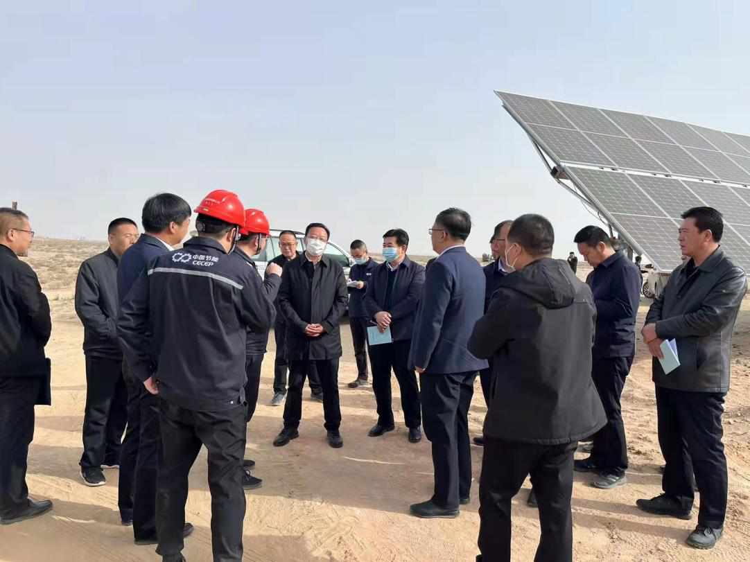 近日,武威市委常委、常务副市长白振海,民勤县委书记李万权及市县相关负责同志一行莅临中节能民勤二期70兆瓦光伏发电项目视察调研,太阳能西北区副总经理阚斌陪同调研。